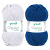 Classico de Gründl est un "classique" intemporel et il est fabriqué avec 50 % de laine mérinos superwash et 50 % d'acrylique. Les couleurs disponibles sont assez variées avec des tons pastels mais aussi des nuances plus vives.