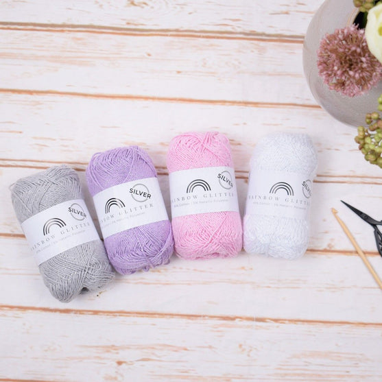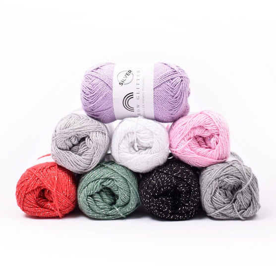 Rainbow Glitter est disponible dans des couleurs sélectionnées avec un fil argenté (trouvez le lien vers la version or en haut du texte), afin que vous puissiez créer exactement le bon look scintillant. Utilisez-le par exemple pour un effet élégant sur des objets d’intérieur, des accessoires ou de la déco. Il est également ravissant pour les amigurumi, les doudous au crochets et figurines - par exemple toutes les licornes que nous aimons tant et qui se doivent d’avoir l’air magique.
