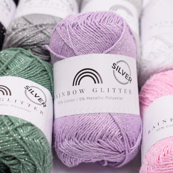 Rainbow Glitter fait partie de notre jolie famille Hobbii Rainbow, et correspond donc aux couleurs sélectionnées. Rainbow Glitter a la particularité d’être composé de 95% coton et 5% polyester métallique, qui donne l’effet scintillant indispensable.