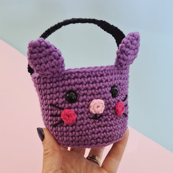 Halloween n’a pas besoin d’être effrayant, n’est-ce pas? Ce tutoriel contient un panier Chaton et des douceurs. Utiliser le panier pour vos goodies aux crochet ou pour aller à la chasse aux bonbons et mettre de vrai bonbons dedans!