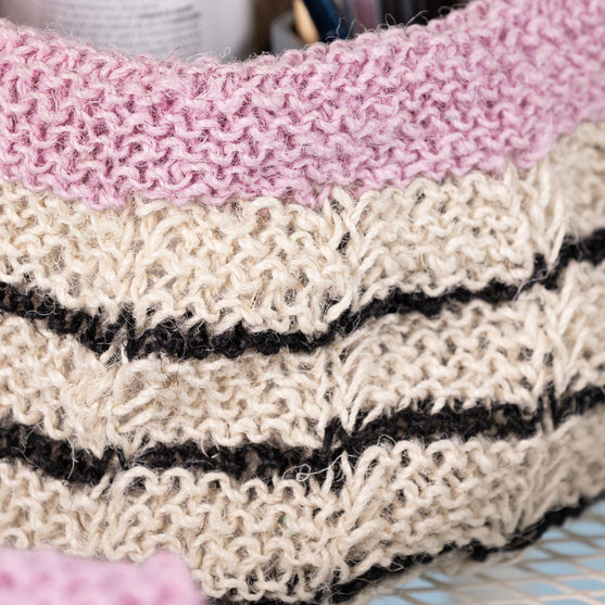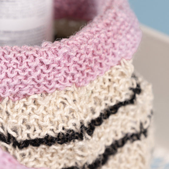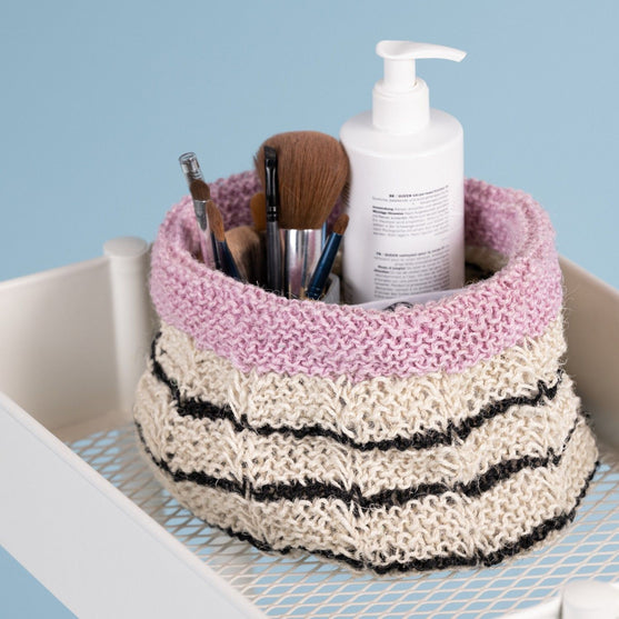 Budapest est une mini-série avec un modèle pour un chiffon à récurer et pour un petit panier. Les deux sont tricotés en fil de jute Judy, qui est un fil grossier et très résistant, et qui donne un aspect rustique.