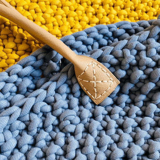 Le sac parfait pour une journée au marché. La base est tricotée en aller retour et le corps en rond.