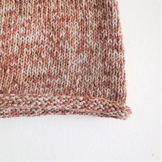 Le débardeur est tricoté du bas vers le haut et est identique devant et derrière. Les mailles montées et rabattues sont laissées brutes, alors qu’une lisière en I-cord sera réalisée sur les bords des triangles.