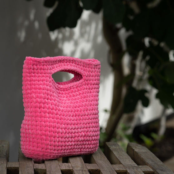 Le sac est majoritairement crocheté avec des ms doubles.