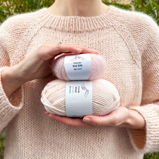 Un pull large et simple tricoté depuis le haut vers le bas avec 1 fil Friends Kid Silk et 1 fil Friends Wool. Le modèle convient très bien aux débutants.