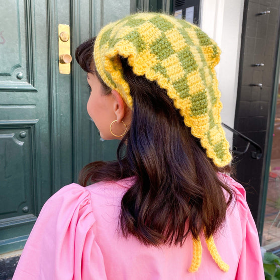 Bonnie bandana est crocheté avec 1 fil Friends Cotton 8/4 et 2 fils Diablo, ce qui permet de lui donner un aspect très épais et doux à la fois. Contrairement au bandana classique, celui-ci est destiné aux mois froids de l’année. Grâce aux gros carreaux, il est largement possible de jouer avec les couleurs. Ce modèle requiert un niveau intermédiaire au crochet.