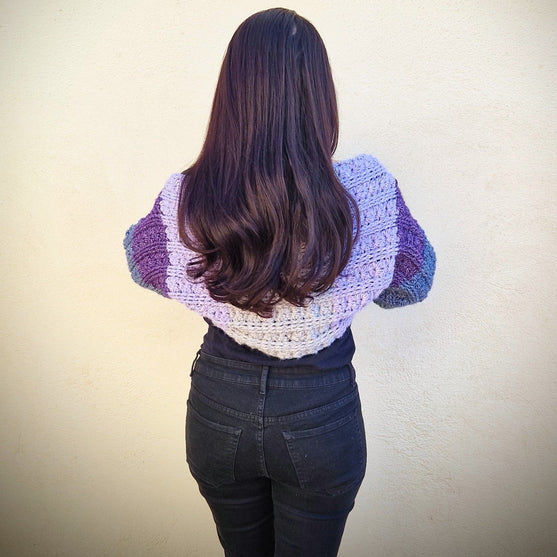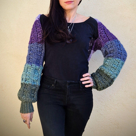 C’est une taille unique crochetée d’une manche à l’autre. Pas de couture nécessaire! Le modèle peut également être ajusté à vos bras et la longueur de votre corps avec peu d’effort.
