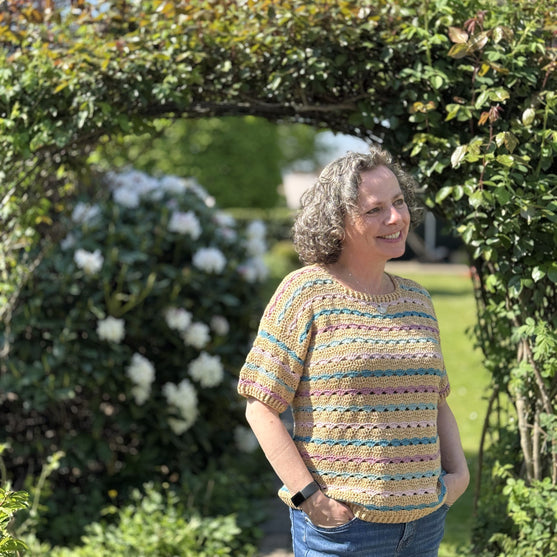 Le pull est tricoté depuis le bas vers le haut. C’est pourquoi le corps et les manches sont tricotés séparément avant d’être assemblés.