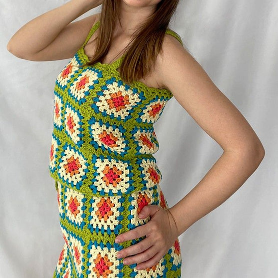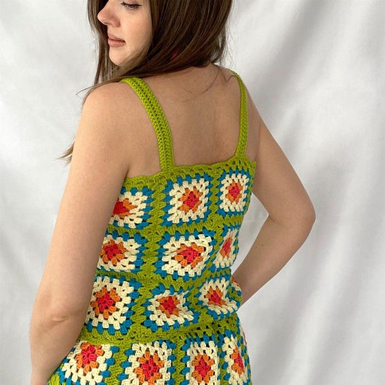 Ajoutez une dose de couleurs estivales à votre garde-robe grâce à notre modèle de débardeur au crochet. Conçu pour s’associer parfaitement avec le modèle de jupe, ce projet contient des carrés granny square classiques en couleurs d’été éclatantes. Le modèle convient à tous les niveaux, car il contient des explications claires ainsi qu’un tutoriel pas-à-pas. Perfectionnez votre style d’été en ajoutant cette pièce fait main à votre garde-robe !