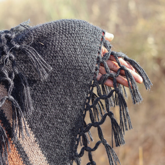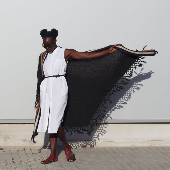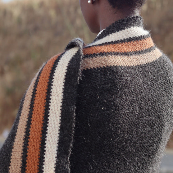 L’étole Wingman est un projet au crochet travaillé avec un crochet 5 mm, en une seule pièce du bas vers le haut pour former une forme de trapèze. Il est crocheté au point granité, qui est facile, méditatif et produit une texture semblable à du tricot. L’étole est conçue pour être surdimensionnée, mais il y a 2 tailles plus petites disponibles.
