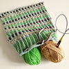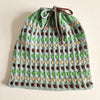 Emportez votre tricot lors de vos déplacements grâce à ce joli sac à projet coloré, tricoté en côtes bicolores. Le sac se tricote du bas vers le haut, alternant des petits carrés/mosaïque en point envers sur une base de jersey. Choisissez votre propre combinaison de couleurs, la Friends Wool est disponible dans de nombreuses teintes.